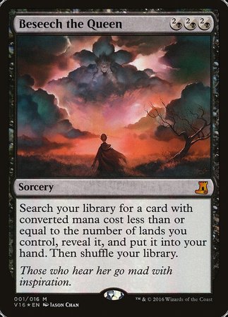 ({2/B} can be paid with any two mana or with {B}. This card's converted mana cost is 6.) Search your library for a card with converted mana cost less than or equal to the number of lands you control, reveal it, and put it into your hand. Then shuffle your library.